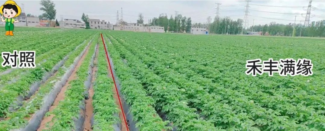 同一地块,底施禾丰满缘(右)与传统复合肥料(左)相比,长势天壤之别!